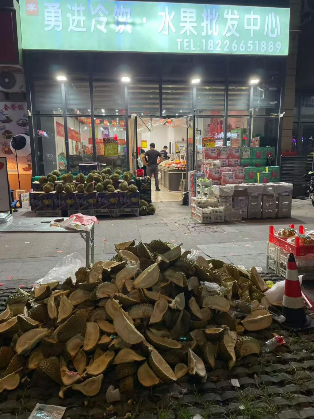 今年9月的一天,李勇進水果店賣的榴蓮。受訪者供圖