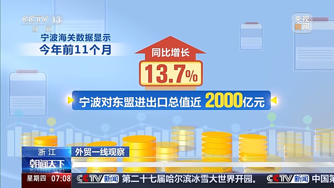 寧波某外貿(mào)企業(yè)負(fù)責(zé)人 陳斌:今年我們企業(yè)1到10月份,出口東盟相比去年有了50%到60%的增長(zhǎng)。