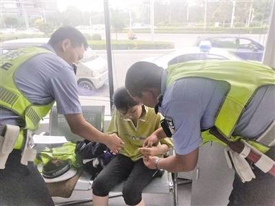 當(dāng)日,民警魏軍、張延旭、崔東迅在崗?fù)?nèi)執(zhí)勤,女孩兒進(jìn)入崗?fù)ぃ樕n白滿頭是汗,沒(méi)說(shuō)幾句話便暈倒并且伴有輕微抽搐癥狀,民警迅速將女孩兒扶到椅子上,初步判斷可能是中暑或者是低血糖引起,民警一邊呼叫救援一邊將高糖分飲料和冰糖喂到女孩口中,并用紙片不停地扇涼降溫,5分鐘后女孩兒逐漸緩過(guò)來(lái),臉色也漸漸恢復(fù)血色。