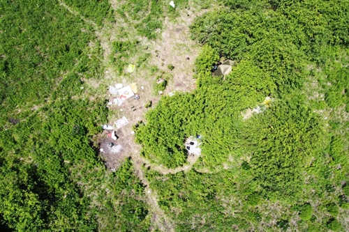 無人機傳回的非法采挖野生藥材窩點現(xiàn)場畫面。