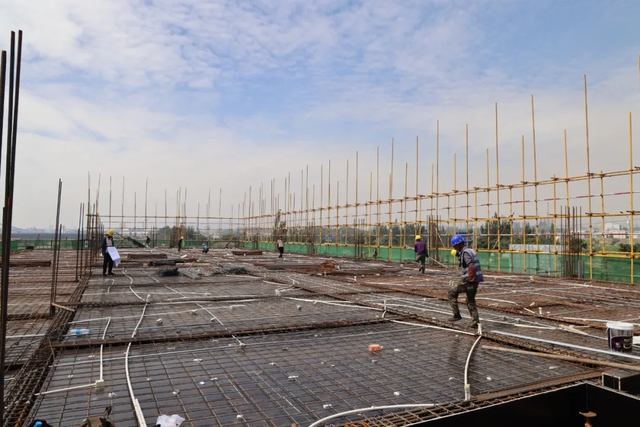 “目前,項目正在進行基礎(chǔ)設(shè)施施工,辦公樓已完成1層封頂,1號車間正在進行主體結(jié)構(gòu)的鋼管架的搭設(shè)和模板制作,外網(wǎng)工程和2號、3號車間基礎(chǔ)施工也在順利推進?!表椖渴┕挝回撠熑送跣闵礁嬖V記者,該項目計劃今年8月底完成辦公樓、綜合服務(wù)樓主體施工,9月中旬完成3個車間主體施工。