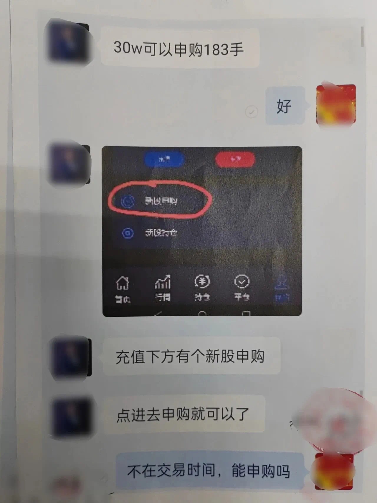 王女士平時(shí)熱衷炒股,有自己的“股友圈”。最近有人介紹給她一位所謂“神人”,加微信后方稱自己“有人”,可以輕松幫她打新股和推薦優(yōu)質(zhì)股,還讓她加群分享強(qiáng)勢(shì)個(gè)股、機(jī)構(gòu)內(nèi)部消息、私募打新策略,觀看“內(nèi)部”直播間、聽投資“大神”講解股票知識(shí)。甚至還能“幫你爭(zhēng)取到機(jī)構(gòu)席位賬戶”,而這一切只要通過自己推薦的平臺(tái)就都能做到。