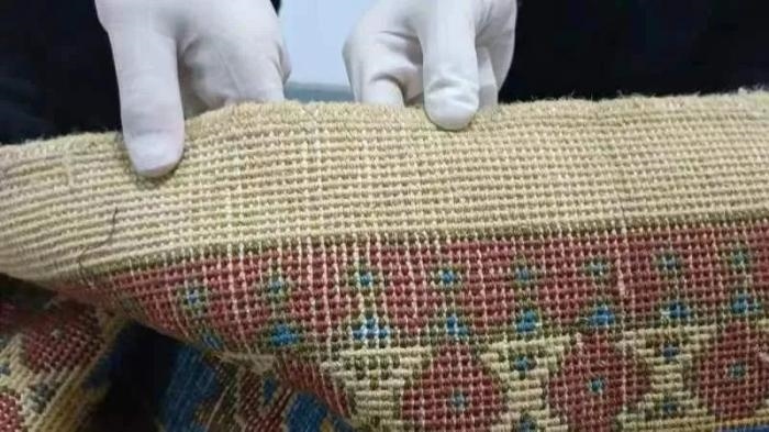 深圳郵局海關(guān)關(guān)員在對過境貨物開展監(jiān)管時發(fā)現(xiàn),1票包裹機檢圖像可疑,隨即對其開箱查驗。查驗發(fā)現(xiàn),該票包裹內(nèi)有一塊做工精致的地毯,編織到地毯內(nèi)的透明細塑料管中藏匿有細粉末一批,毛重11555.8克。經(jīng)現(xiàn)場試劑檢測,判斷為冰毒。目前,海關(guān)緝私部門已介入調(diào)查處理。