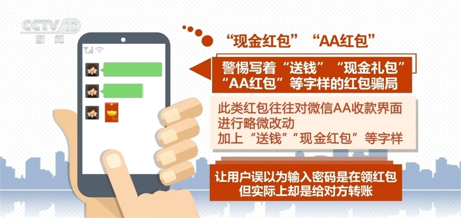 央視網(wǎng)消息:過(guò)年期間搶紅包“拼手速”成為一種新玩法。但一些不法分子卻打起了壞主意,制造了一些假紅包,企圖騙取錢(qián)財(cái)。公安機(jī)關(guān)提醒,如果看到這6種微信紅包千萬(wàn)別領(lǐng)!