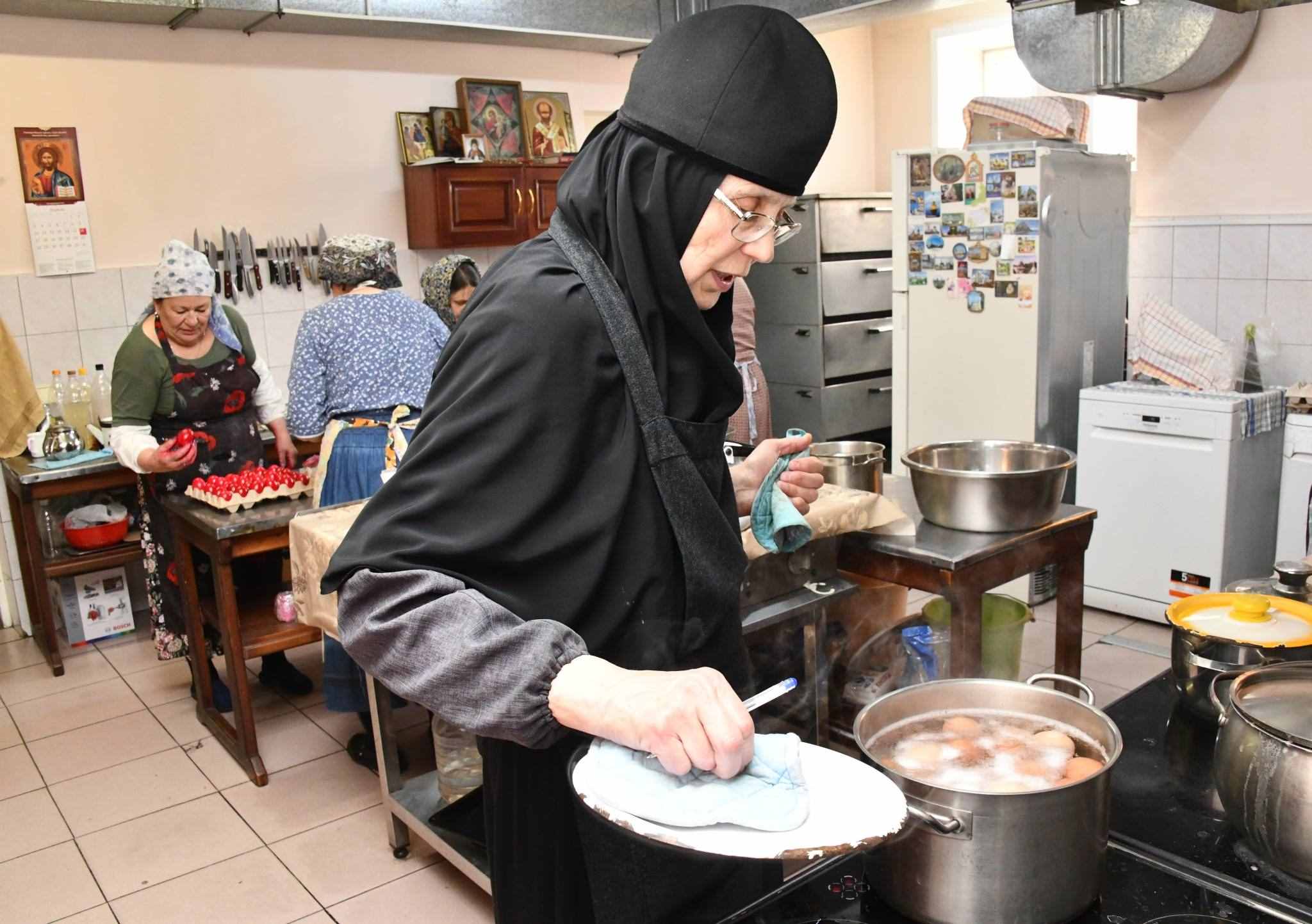 當(dāng)?shù)貢r間2023年4月13日,俄羅斯扎貝卡爾斯基地區(qū),阿塔馬諾夫卡定居點(diǎn)的一修道院內(nèi),民眾在制作東正教復(fù)活節(jié)前的傳統(tǒng)煮雞蛋。視覺中國