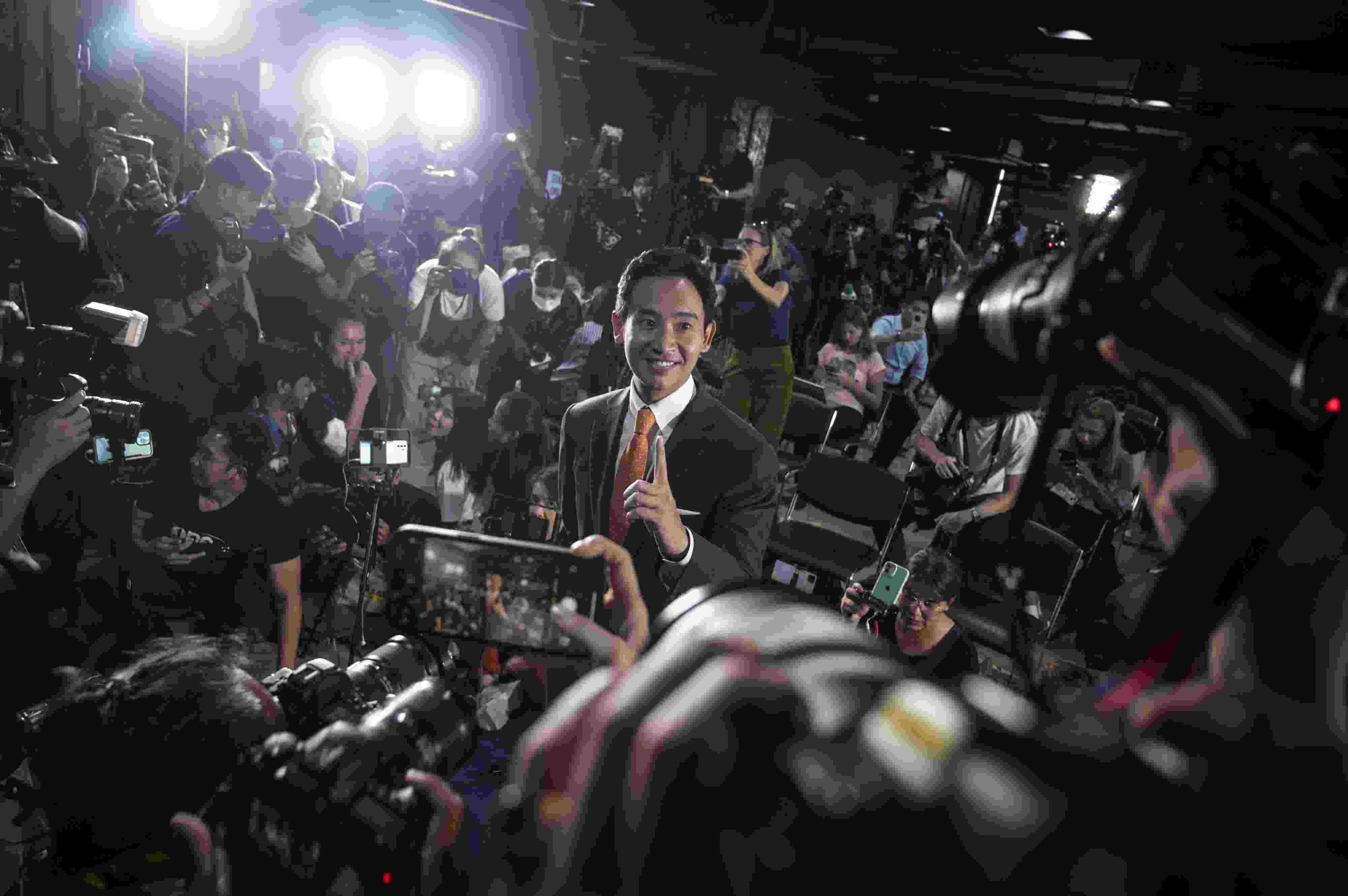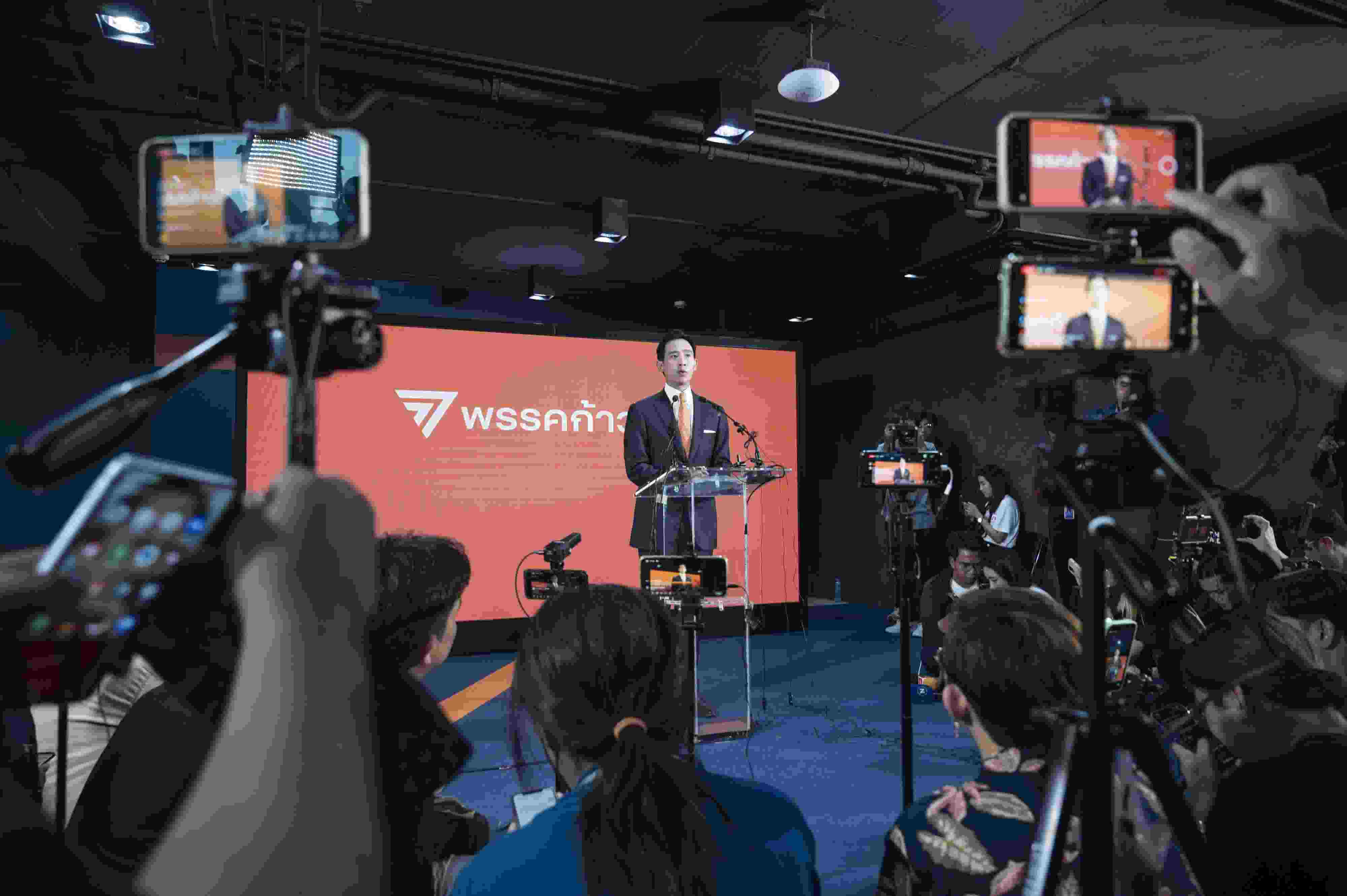 當(dāng)?shù)貢r(shí)間2023年5月15日,泰國(guó)曼谷,泰國(guó)遠(yuǎn)進(jìn)黨黨魁皮塔在該黨總部舉行記者招待會(huì)。當(dāng)日中午,在泰國(guó)國(guó)會(huì)下議院選舉中獲得選票數(shù)和下議院席位數(shù)暫時(shí)領(lǐng)先的遠(yuǎn)進(jìn)黨黨魁皮塔宣布遠(yuǎn)進(jìn)黨在此次選舉中獲勝,已經(jīng)做好組建新一屆政府的準(zhǔn)備,自己也已準(zhǔn)備好擔(dān)任總理一職。 視覺(jué)中國(guó)