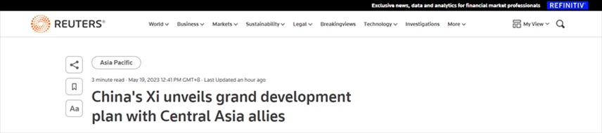 英國路透社網(wǎng)站評論指出,中國國家主席習近平19日就中國同中亞五國合作交往提出建議,從深化互聯(lián)互通到拓展經(jīng)貿(mào)關系,公布了宏偉的發(fā)展計劃,全面助力中亞國家提升發(fā)展能力。