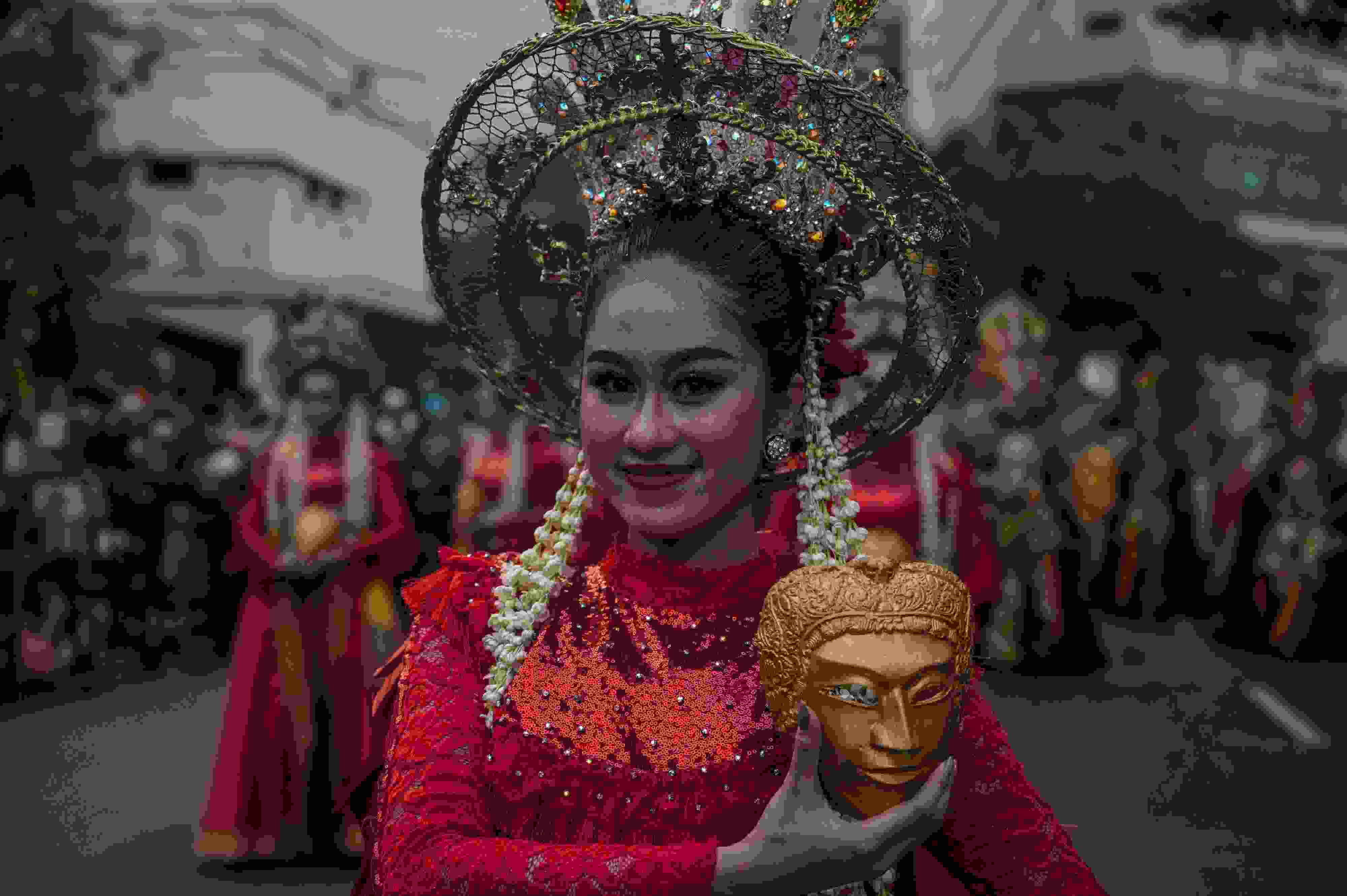 當地時間2023年5月27日,印度尼西亞泗水,表演者參加慶祝建城730周年的街頭游行。 視覺中國