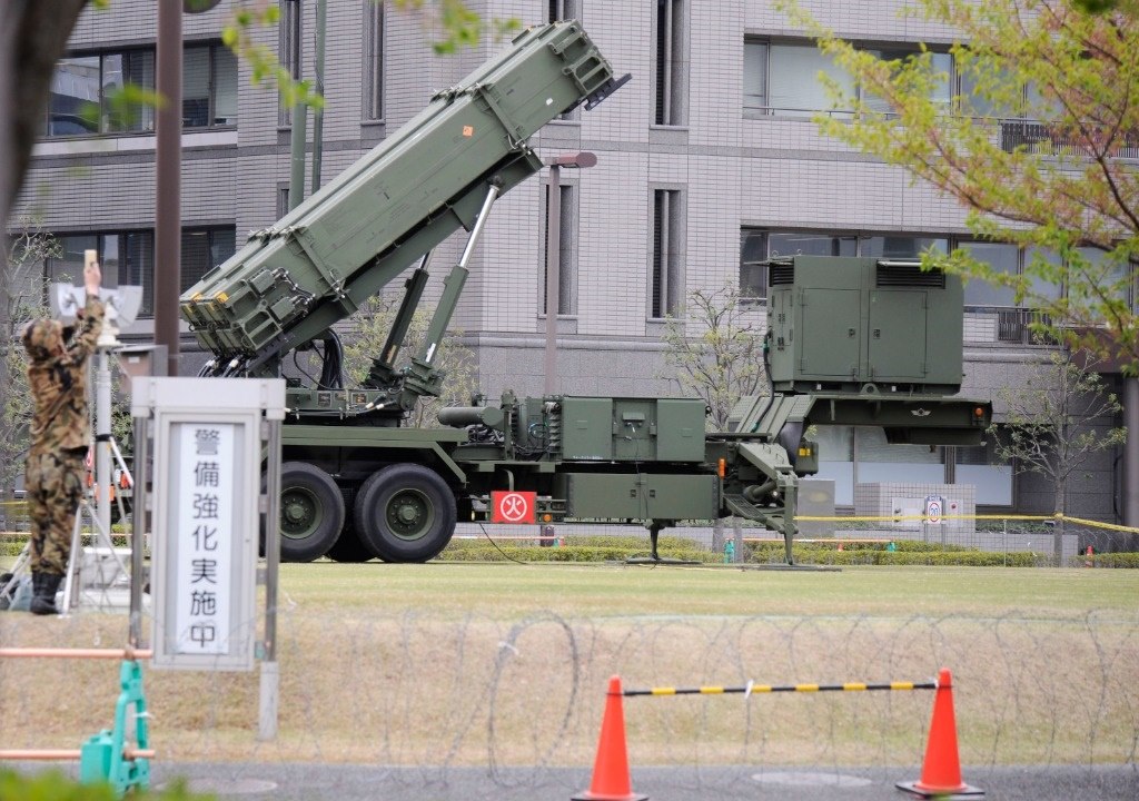 2013年4月9日,在日本東京的防衛(wèi)省總部,“愛國者3型”導(dǎo)彈發(fā)射裝置停放在運(yùn)動(dòng)場(chǎng)內(nèi)。新華社發(fā)(關(guān)賢一郎攝)