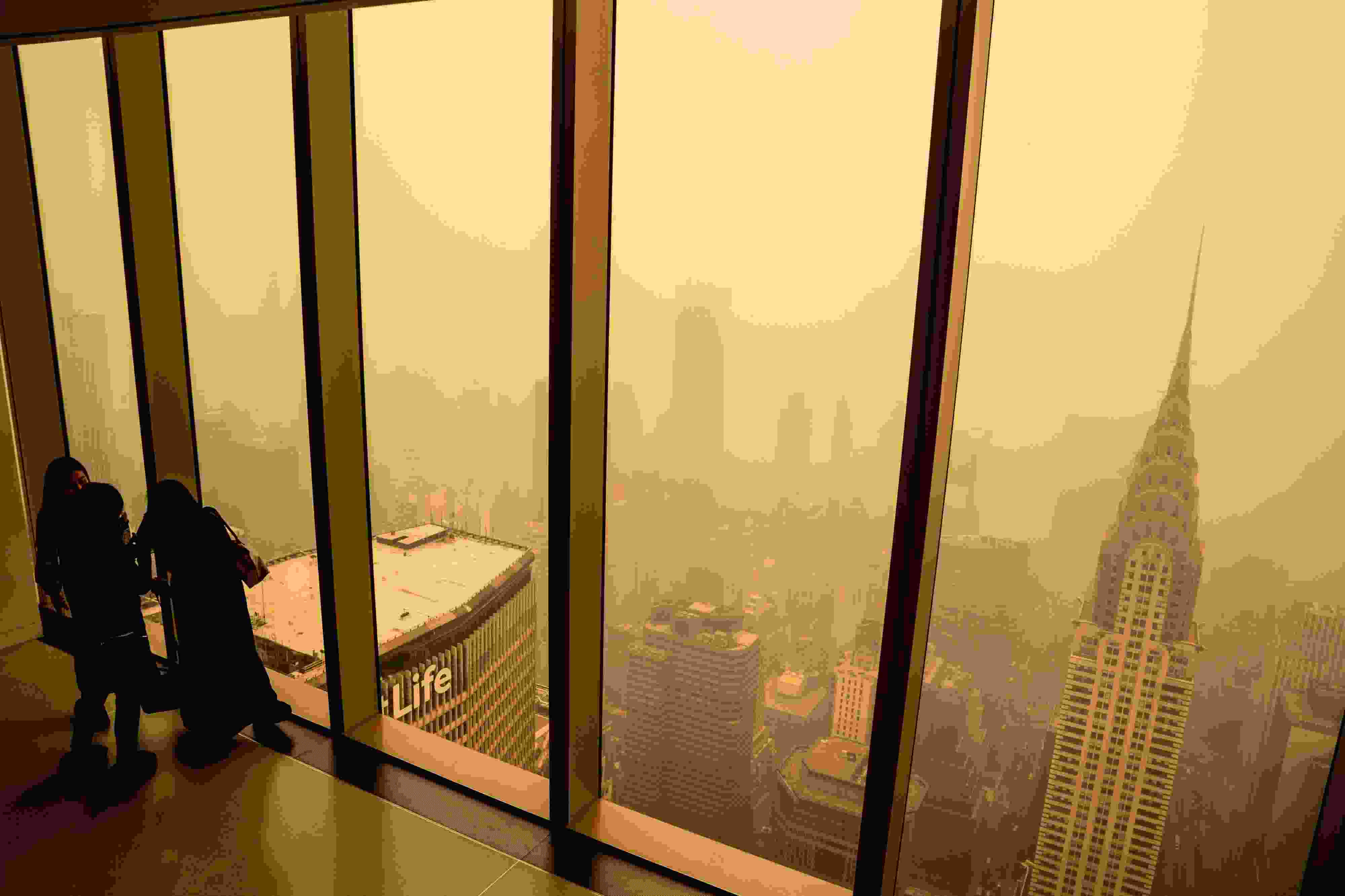 當(dāng)?shù)貢r(shí)間2023年6月7日,受加拿大野火煙霧持續(xù)南下影響,美國紐約籠罩在“橙色霧霾”中。當(dāng)天,紐約成為全球空氣污染最嚴(yán)重的城市。 視覺中國