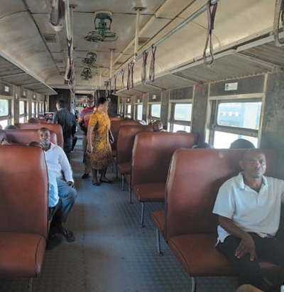 乘客乘坐坦贊鐵路列車(chē)。圖為本報(bào)記者黃培昭攝