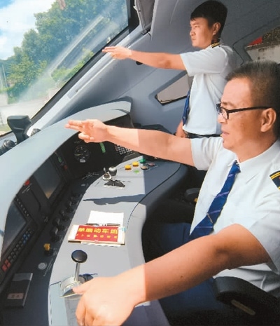 中方司機(jī)與老方副司機(jī)一同值乘“瀾滄號(hào)”國際旅客列車。
