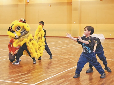 馬來西亞雪蘭莪州培才二校的學生在練習舞獅。