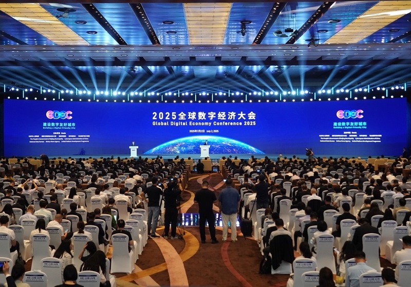 這是7月2日拍攝的2025全球數(shù)字經(jīng)濟大會開幕式現(xiàn)場。
