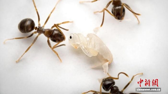 工蟻與蛹(圖片來(lái)自Barbara Leyre/奧地利科技學(xué)院)。施普林格·自然 供圖