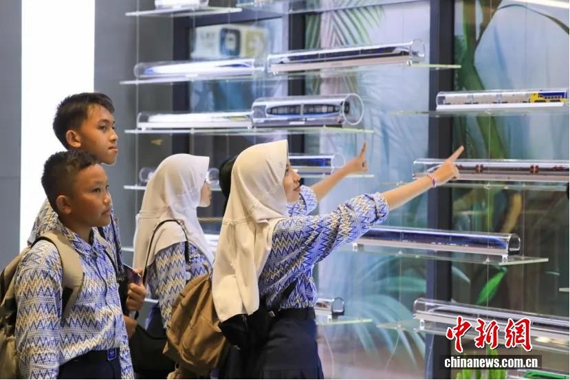 當(dāng)?shù)貢r(shí)間2024年10月17日,一群印尼學(xué)生在印尼雅加達(dá)的雅萬(wàn)高鐵動(dòng)車組科普文化交流基地參觀。 中新社記者 李志全 攝