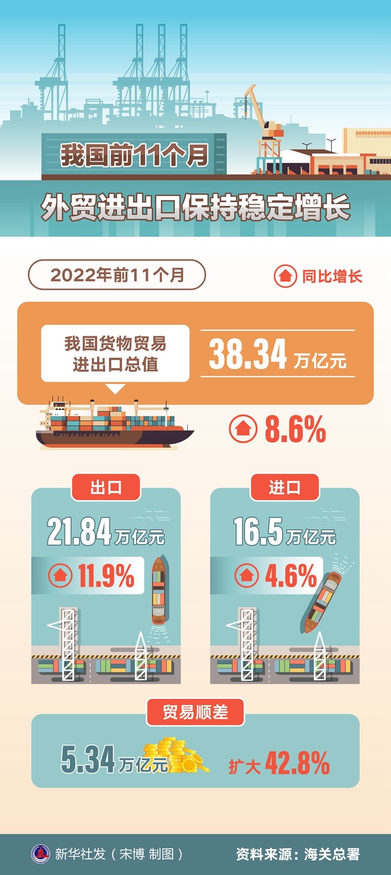 我國前11個月外貿(mào)進出口保持穩(wěn)定增長
