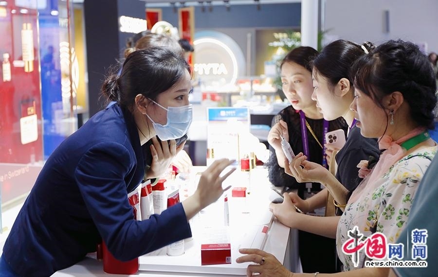 4月11日,工作人員為觀眾介紹護膚產(chǎn)品。中國網(wǎng)記者 吳亮 攝