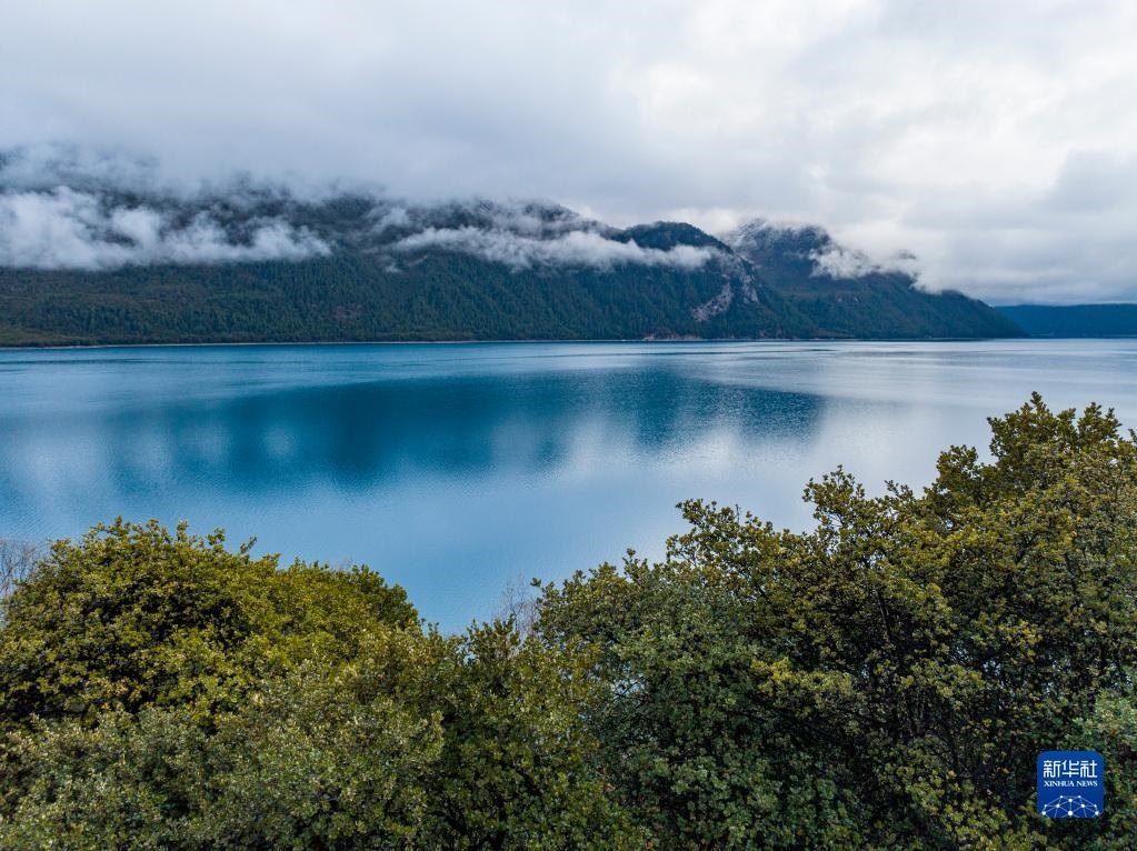 4月17日拍攝的巴松措(無(wú)人機(jī)照片)。