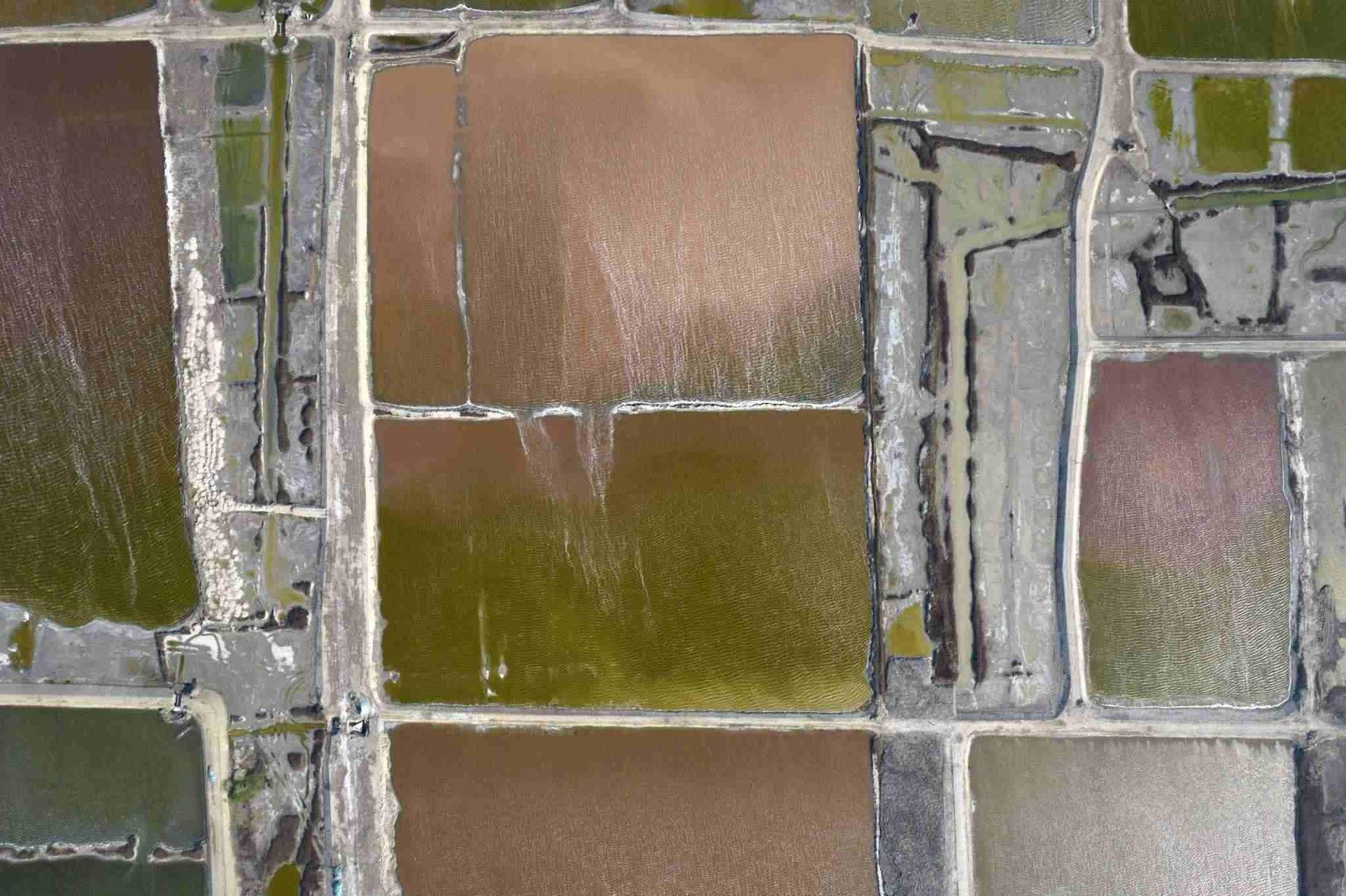 山西運城:七彩鹽湖現(xiàn)風吹波浪景觀