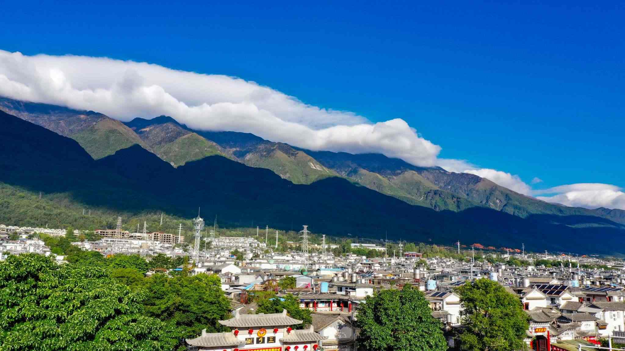 云南大理:蒼山上空現(xiàn)“棉被云”