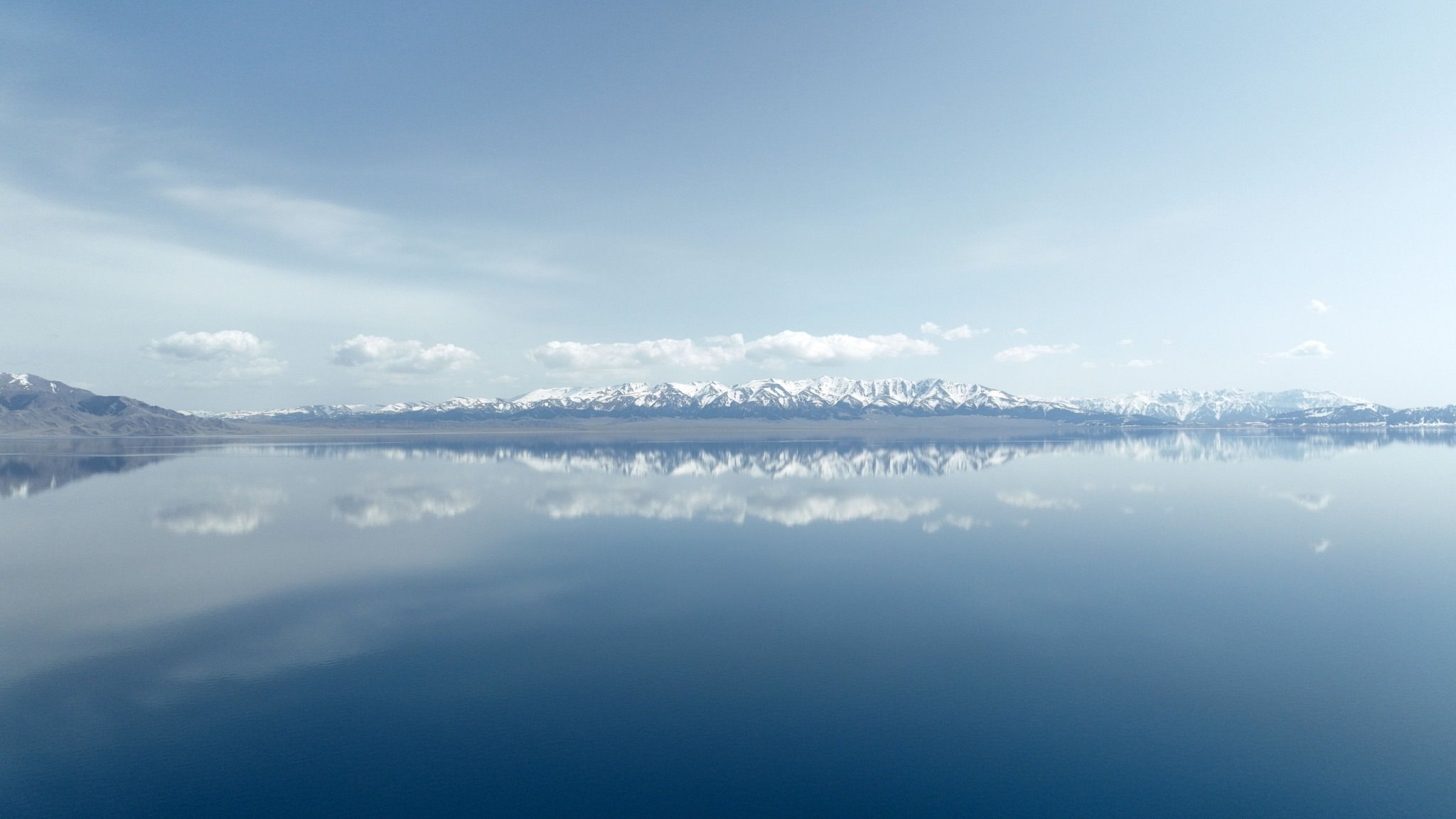 新疆博州:賽里木湖與雪山相互映襯