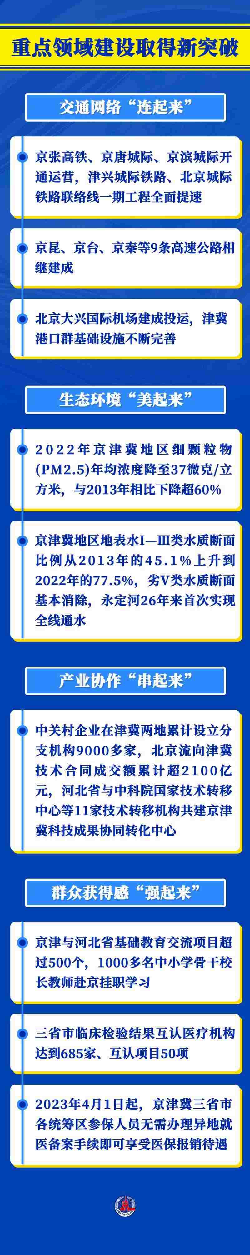 京津冀協(xié)同發(fā)展是一個系統(tǒng)工程。9年多來,三地攜手發(fā)力,重點區(qū)域協(xié)同發(fā)展步穩(wěn)蹄疾,交通、環(huán)境、產(chǎn)業(yè)、公共服務(wù)等重點領(lǐng)域建設(shè)不斷取得新突破。