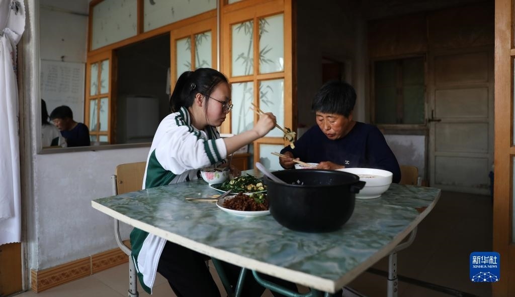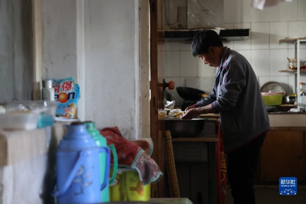 張連琴為女兒準(zhǔn)備晚餐(5月7日攝)。