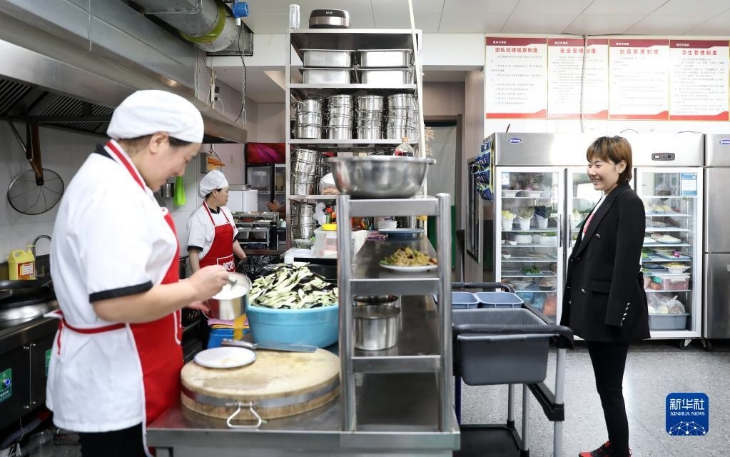 5月11日,韓丹來到自己開的火鍋店后廚,和員工聊聊當(dāng)天的備菜情況。