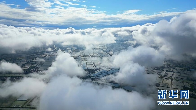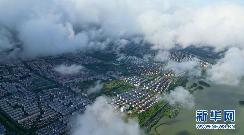 5月17日,雨后,南京市高淳區(qū)的天空掛起了一道絢麗的彩虹。云上彩虹與藍(lán)天白云交相輝映在固城湖上空,形成絕美畫卷。(文靜)