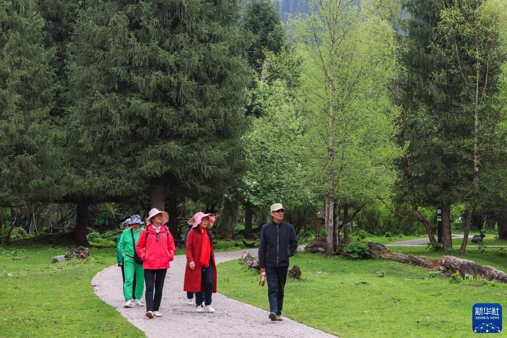 5月19日,游客在位于新疆新源縣的那拉提旅游風(fēng)景區(qū)觀光。