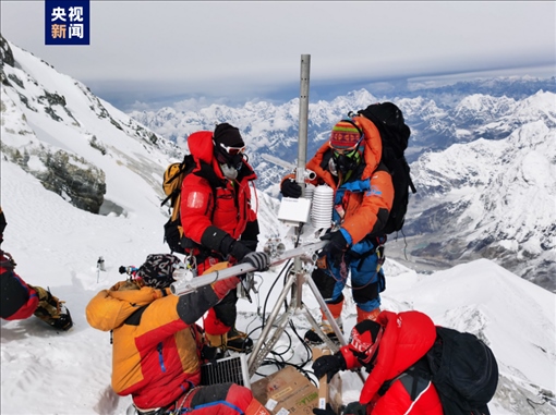 5月23日上午,2023“巔峰使命”珠峰科考登山隊(duì)員正在海拔8830米世界海拔最高的自動(dòng)氣象站做技術(shù)升級(jí)。
