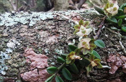 蘭科新物種——臥龍無柱蘭,于2021年11月發(fā)表于國際植物學(xué)期刊《北歐植物學(xué)》,是程躍紅和林紅強(qiáng)等人在轄區(qū)巡護(hù)監(jiān)測過程中發(fā)現(xiàn)的,以模式產(chǎn)地“臥龍”命名。該蘭科植物生長在海拔2700米左右的陡峭崖壁上,植株高約19-22厘米,花期7-8月,莖為呈紫紅色,開白色小花,中心為綠色,目前僅在大熊貓國家公園臥龍片區(qū)發(fā)現(xiàn)1個(gè)居群,約70株成熟個(gè)體,參照IUCN(世界自然保護(hù)聯(lián)盟)的標(biāo)準(zhǔn),臥龍無柱蘭被認(rèn)定為“極度瀕?!钡燃壍闹参?。