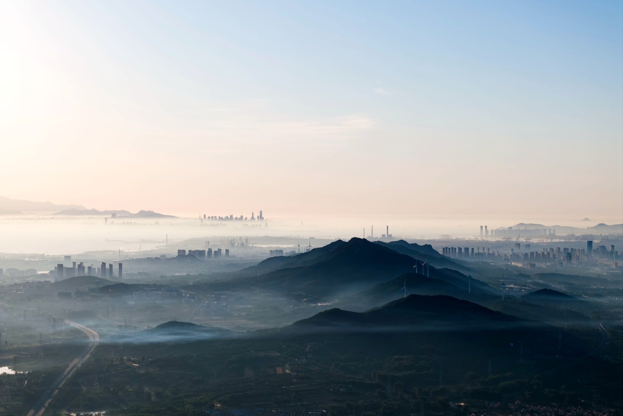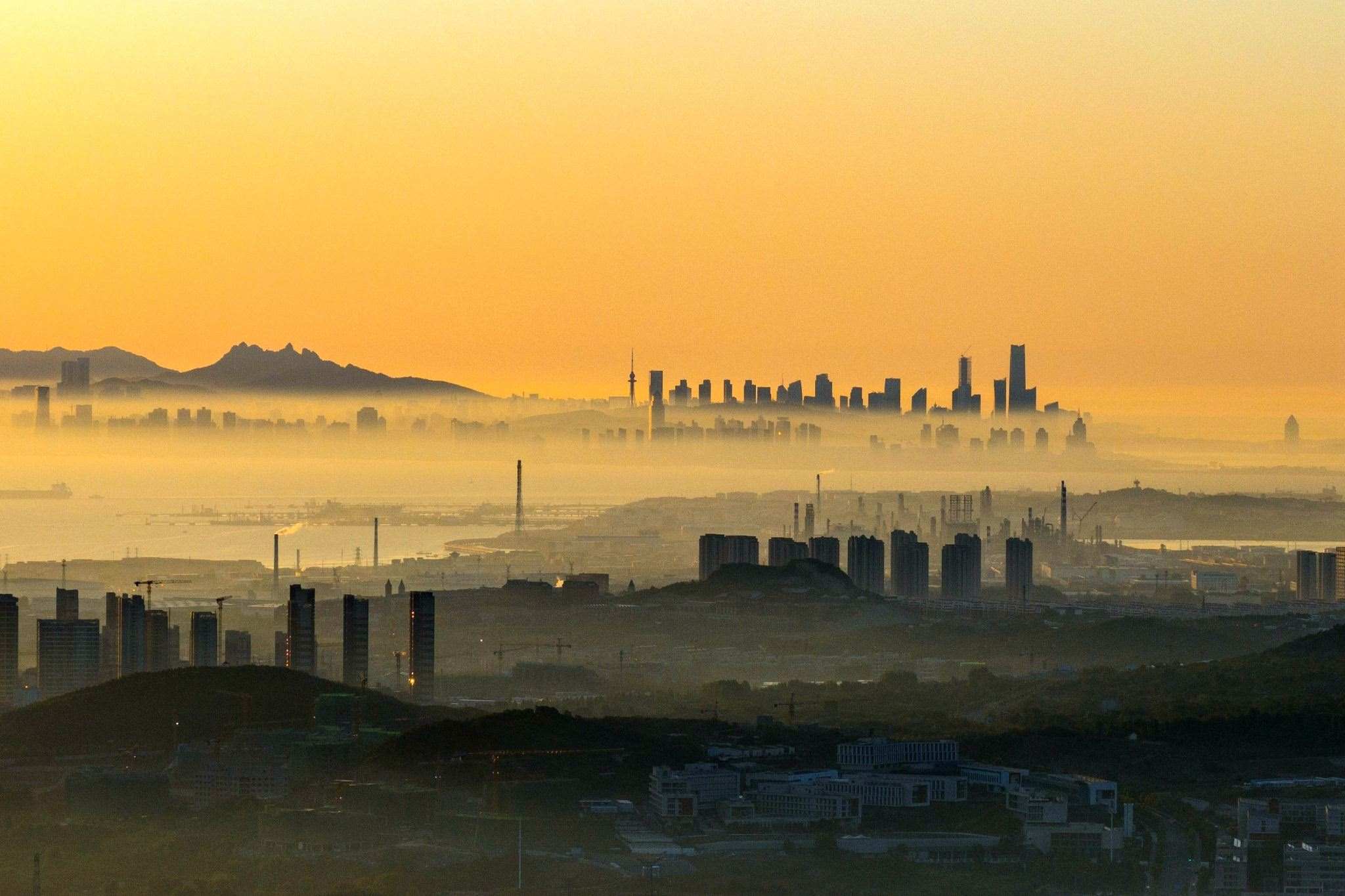 2023年6月3日,青島,膠州灣畔晨景如畫。視覺中國