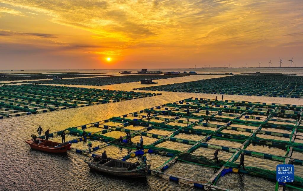 山東榮成:海洋牧場(chǎng)朝霞如畫
