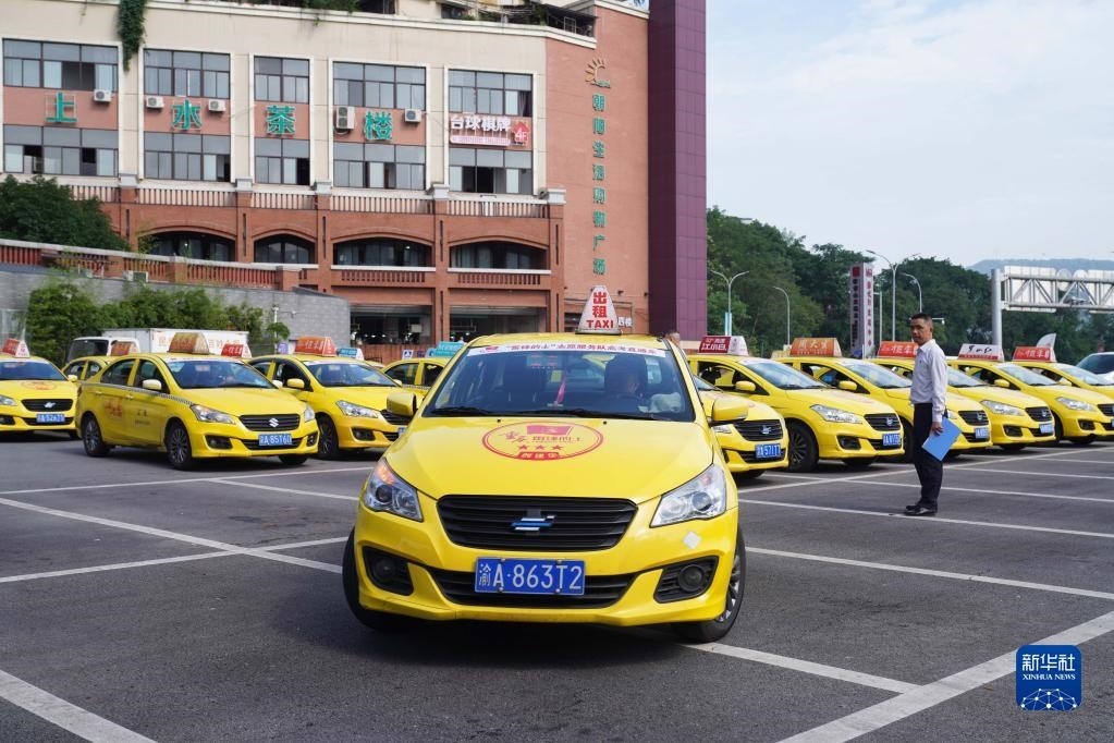 當日,在重慶公運集團北碚分公司停車場,當?shù)亍袄卒h的士”志愿服務(wù)隊高考直通車集結(jié)出發(fā)。高考期間,考生可憑準考證免費搭乘愛心送考車前往轄區(qū)各考點,也可以通過公布的電話進行預(yù)約乘坐。新華社發(fā)(秦廷富 攝)