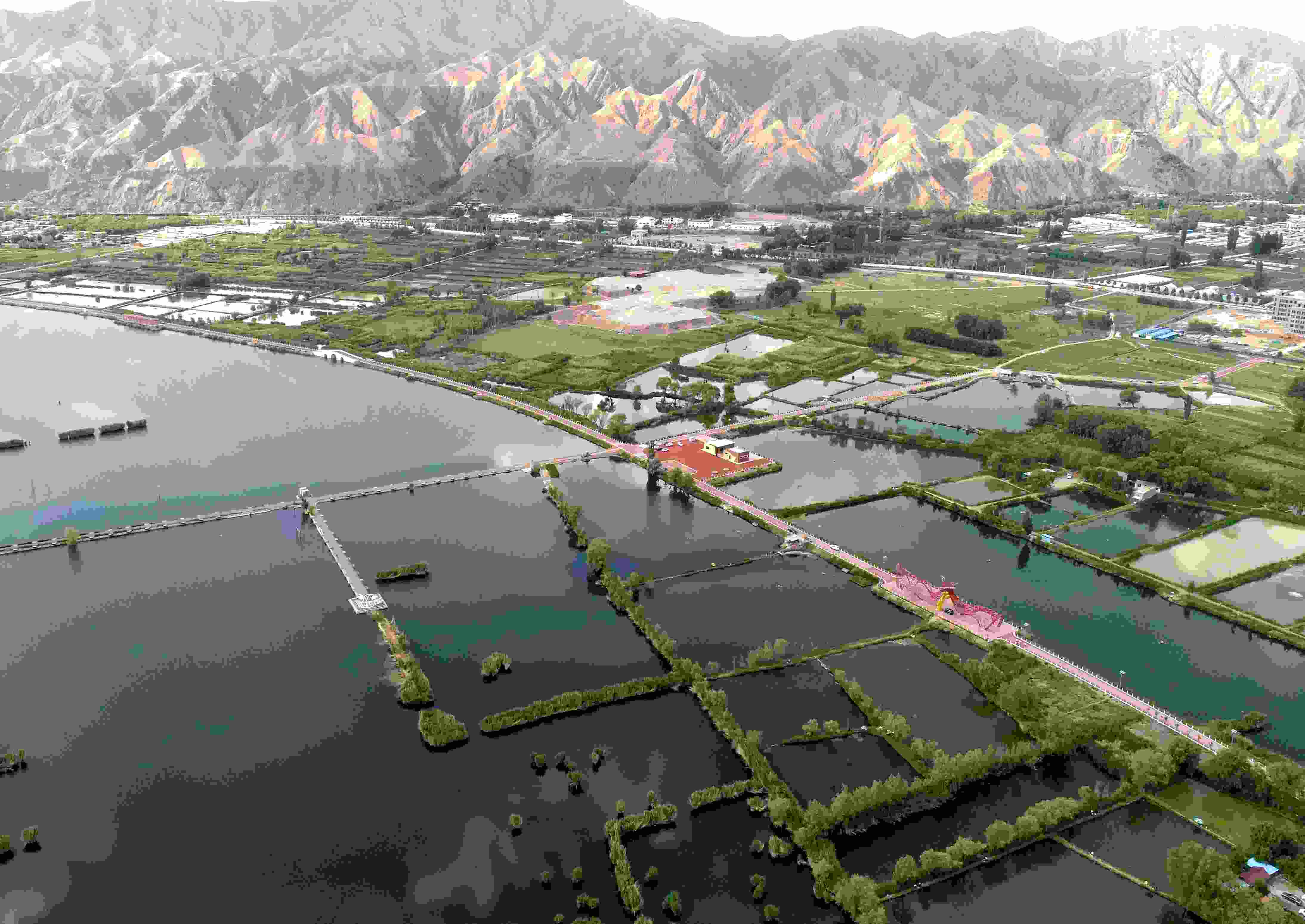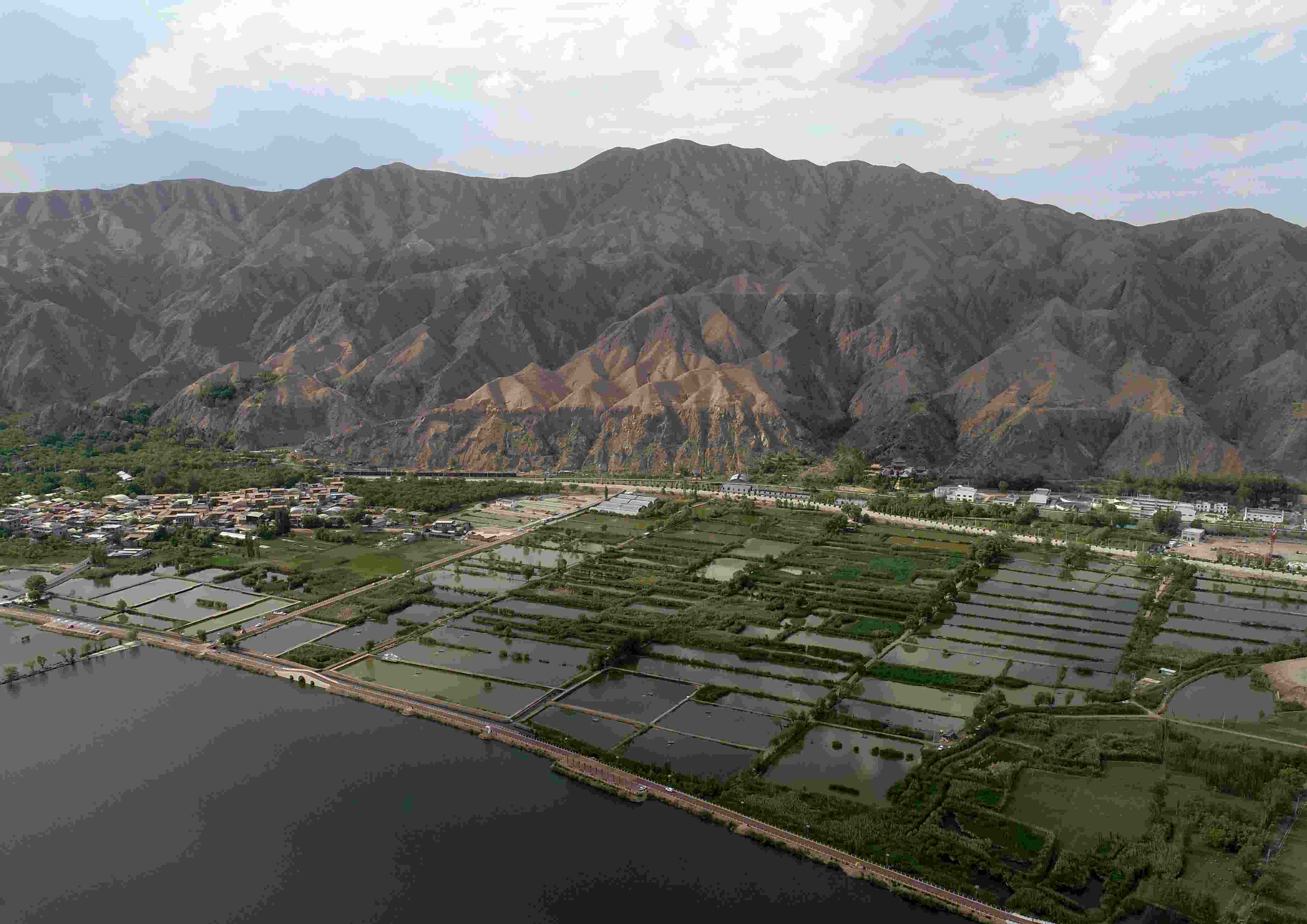 初夏時節(jié),甘肅省永靖縣太極島黃河濕地風光秀麗,島上蘆草叢生,綠意盎然,游客乘船在蘆葦蕩里游玩。沿河公路與狹長的黃河交相輝映,星羅棋布的人工魚塘宛如一塊塊玉石鑲嵌在大地上,勾勒出一幅美妙的山水田園畫卷。近年來,永靖縣依托太極島黃河濕地豐富的生態(tài)資源,將文旅產業(yè)與生態(tài)保護相結合,進一步提升水產養(yǎng)殖、濕地保護以及休閑旅游功能。