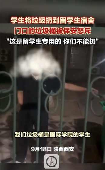 ·西安交大學(xué)生用留學(xué)生宿舍垃圾桶遭保安怒斥,學(xué)?;貞?yīng):會對相關(guān)人員進(jìn)行批評教育。