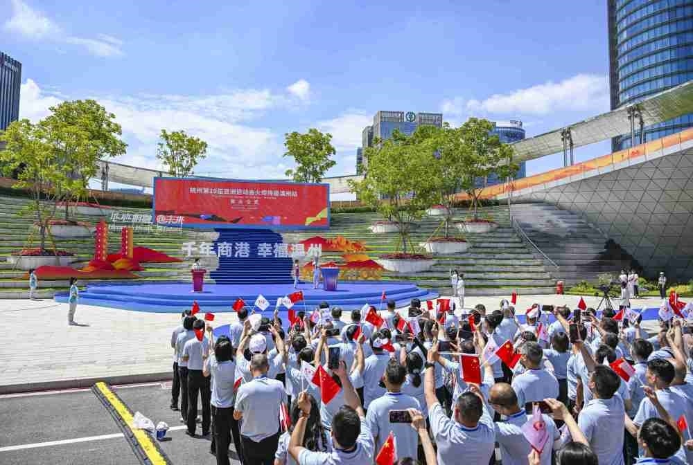 ↑這是杭州亞運(yùn)會(huì)火炬?zhèn)鬟f杭州站起跑儀式現(xiàn)場。