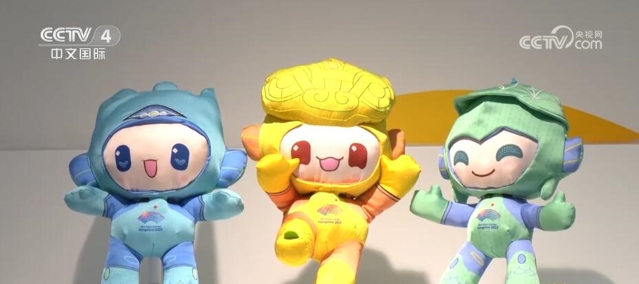 亞運(yùn)會(huì)特許商品零售店店長 陳晨:賣得最好的就是亞運(yùn)吉祥物三寶。補(bǔ)貨上來之后,立馬空掉,然后再補(bǔ)、再空,再補(bǔ)、再空,我們基本每天最少保證一次的補(bǔ)貨量。