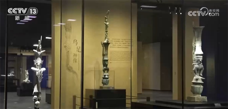 央視網(wǎng)消息:昨天(7月27日),三星堆博物館新館試運行。在新館展出的文物中,有一件身高達2.53米的“倒立鳥足頂尊神像”以其腦洞大開的奇妙設(shè)計獨樹一幟,那么這件器物究竟由多少塊“文物組件”組合而成?拼對“合體”后的它又長什么樣呢?我們跟隨記者的鏡頭一探究竟。