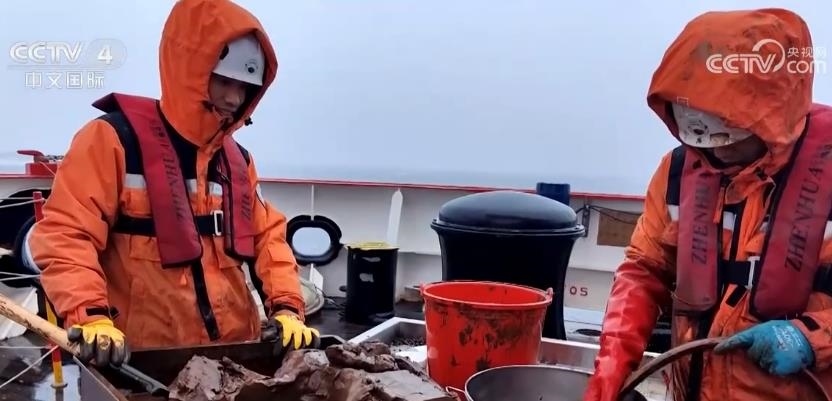 中國第13次北冰洋科學(xué)考察隊(duì)隊(duì)員 劉坤:大概兩個(gè)小時(shí)吧。冷,海水比較冷,上來之后在兩(攝氏)度左右,泥的溫度也差不多在兩(攝氏)度。