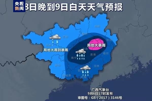“??蓖>?殘渦將移入廣西 8日起大到暴雨局地大暴雨來襲