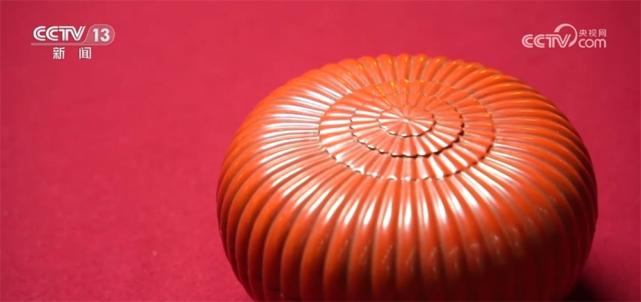 總臺(tái)記者 楊雪:與多穆壺一樣,很多文物都是逐漸從生活用品演化成為藝術(shù)品的。像我們眼前看到的這一款清乾隆款朱漆菊瓣盒就是其中之一。它本來是盛放像干果、小點(diǎn)心等這些小件物品的盒子,在不斷使用的過程中,逐漸演化成為了宮廷藝術(shù)品。