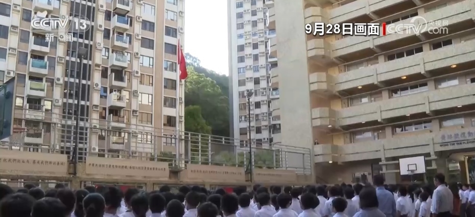 央視網(wǎng)消息:為慶祝中華人民共和國(guó)成立74周年,9月28日,香港培僑中學(xué)邀請(qǐng)解放軍駐香港部隊(duì)三軍儀仗隊(duì)來(lái)校為全體師生舉行升國(guó)旗儀式。培僑中學(xué)是新中國(guó)成立后首批升起五星紅旗的香港學(xué)校之一,從那時(shí)起,升國(guó)旗的儀式在培僑中學(xué)代代相傳,迄今已經(jīng)延續(xù)了74年。