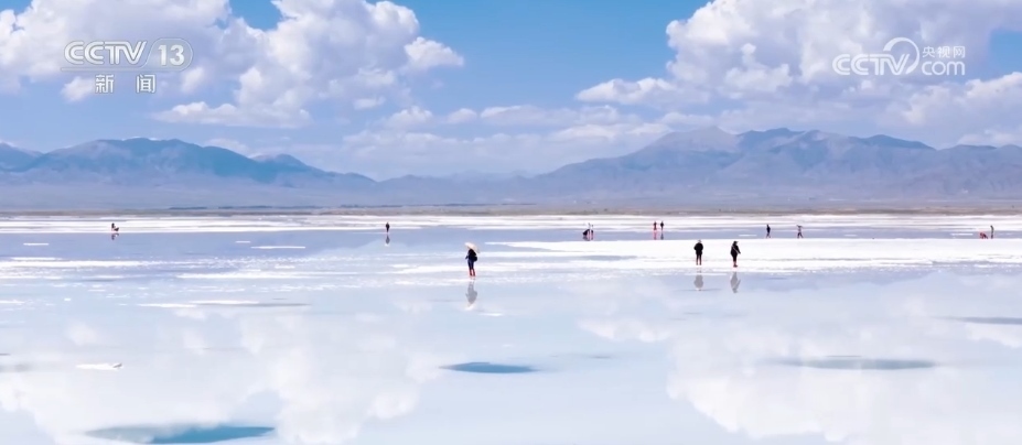 國慶假期,青海省各大景區(qū)迎來客流高峰。據(jù)統(tǒng)計,假期前三天,青海湖景區(qū)累計接待游客5.2萬人次。在茶卡鹽湖景區(qū),鹽湖一望無垠,平靜的湖上倒映著湛藍(lán)的天空。