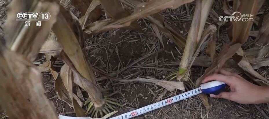 我們扒開田里的玉米看一下,可以看到玉米色澤金黃,而且顆粒飽滿,這說明玉米的品質(zhì)是非常好的。除此之外,這個(gè)玉米品種還有一個(gè)特點(diǎn)就是耐密。一般的玉米株距在28—30cm,我們拿尺子測量一下,玉米株距大約在24cm,相對一般玉米比較小,這樣每畝地種植的玉米株數(shù)更多,產(chǎn)量也就相對較高。