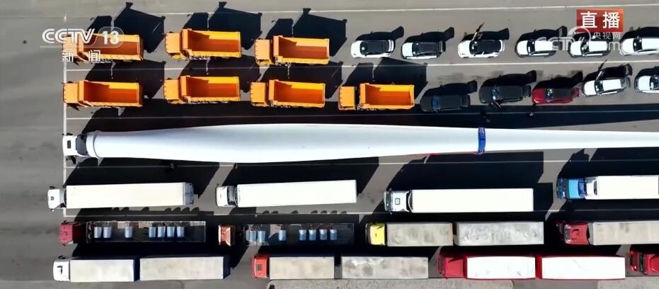 看這邊。大家知道這個(gè)龐大的家伙是什么嗎?它是風(fēng)力發(fā)電機(jī)上的一個(gè)扇葉。根據(jù)不同型號(hào),短的扇葉有三四十米,長(zhǎng)的有七八十米,龐大的塊頭也讓它在出口貨物中格外亮眼。它的這種“出”,出的不僅僅是設(shè)備,還有帶著“中國技術(shù)”的風(fēng)電項(xiàng)目。中亞地區(qū)有非常豐富的風(fēng)力資源,來自中國的風(fēng)電項(xiàng)目、風(fēng)電技術(shù)正全面助力共建“一帶一路”國家的綠色能源發(fā)展。當(dāng)?shù)卣秃jP(guān)還專門將出境通道拓寬了半米,讓這種超寬、超長(zhǎng)的大型設(shè)備能夠順利出境。