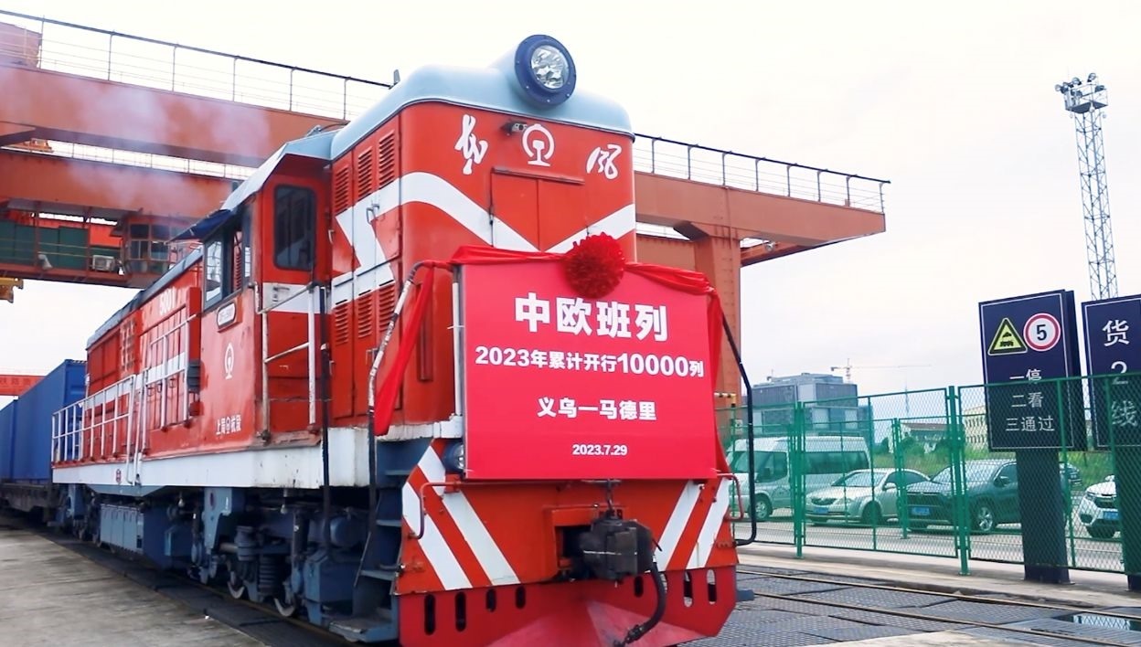 此次元首會(huì)面僅53天后,首列“義新歐”中歐班列從義烏西站鳴笛駛出,分處亞歐大陸兩端的中國(guó)義烏和西班牙馬德里,第一次實(shí)現(xiàn)了鐵路直通,原本近兩個(gè)月的貨物海運(yùn)時(shí)間縮短至21天。
