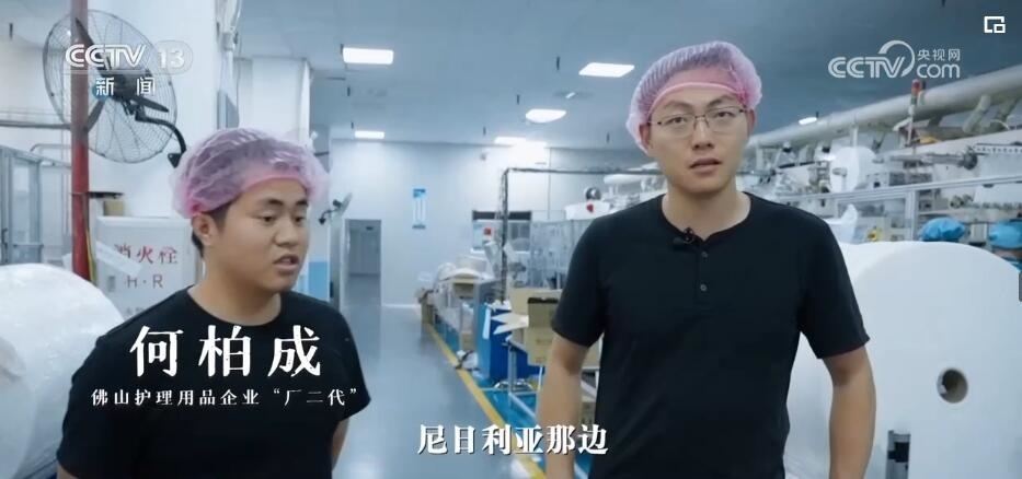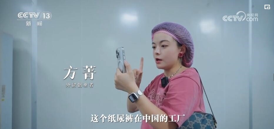 記者:現(xiàn)在方方(方菁)在給她的非洲客戶(hù)打視頻電話(huà),來(lái)給她更直觀地看,這個(gè)紙尿褲在中國(guó)的工廠(chǎng)是怎么生產(chǎn)出來(lái)的。